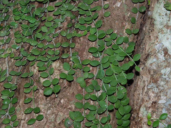 串钱藤叶色终年青翠,性喜湿润,喜半阴环境,较耐旱,耐热,生长适温为20℃~30℃。栽培基质一般选用通气性良好的材料,可用蛇木屑加适量珍珠岩混合配制营养土。